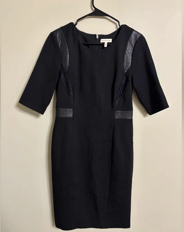 Rebecca Taylor 3/4 Sleeve Faux Leather Trim Ponte Black Sheath Dress Size 8 - $45 - From Ashlee