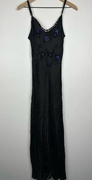 Poupette St Barth Black Satin Embroidered Floral Side Slit Maxi Resort Dress - $128 (78% Off Retail) - From Emily