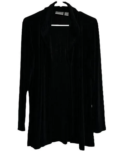 Chico's Travelers Cardigan Sweater Long Sleeve Open Front Collared Black Size 2 converts to size L e... Show more