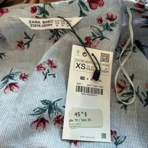 NWT Zara Blue & Red Florral Linen & Cotton Blend Wrap Blouse Top Size XS Floral Print Surplice, V-N... Show more