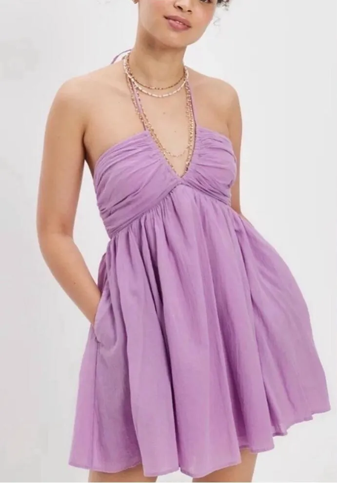 NWOT- NEW WITHOUT TAG! American Eagle Lavender Halter Neck Backless Tie Waist Babydoll Mini Dress S... Show more
