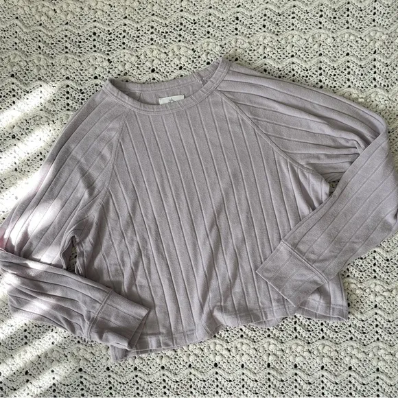 Aerie Offline Ribbed Knit Long Sleeve Pullover Top in the color Lavender. Round neck. Ribbed knit. L... Show more
