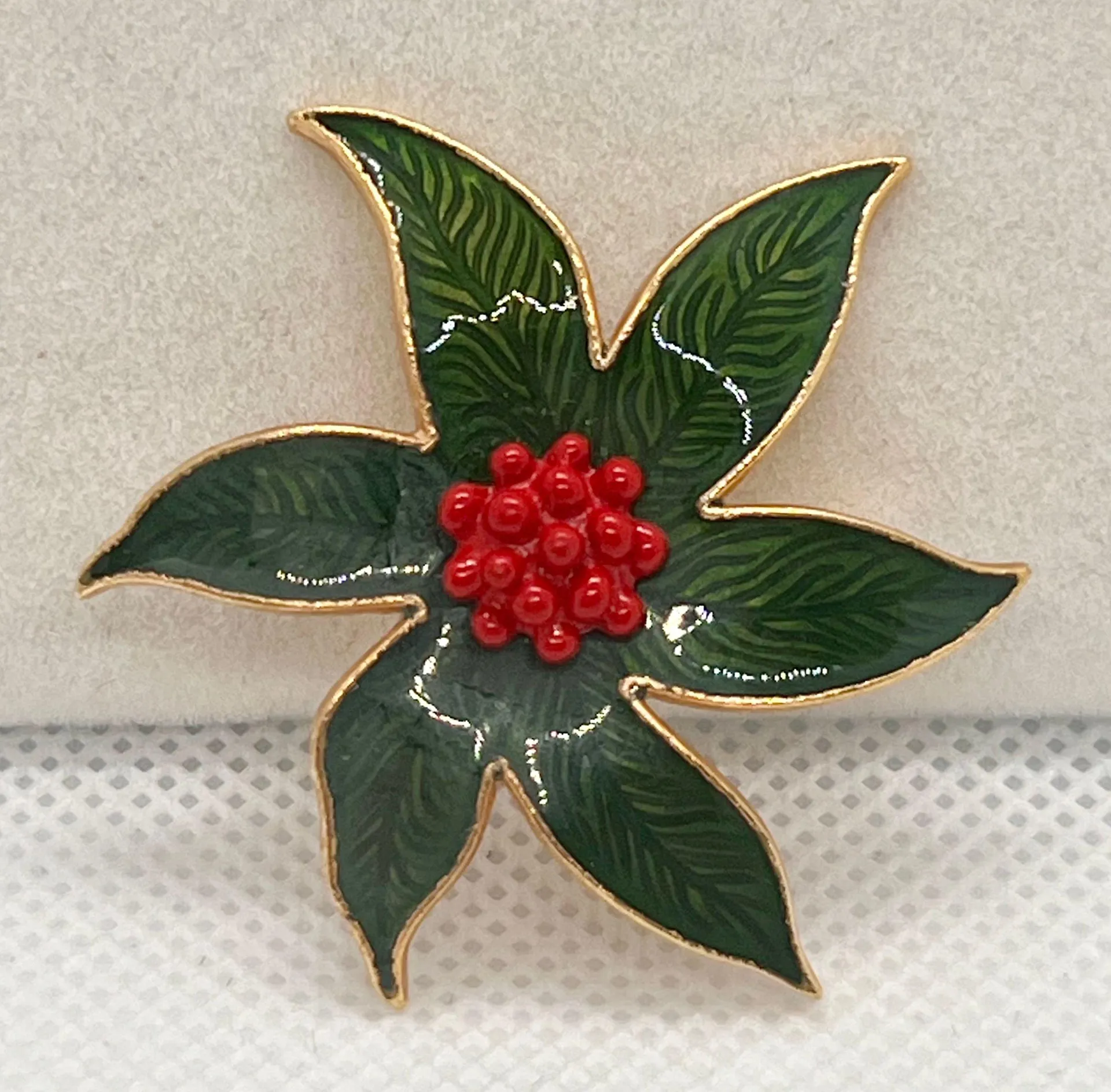 Vintage Enamel Poinsettia Christmas Holiday Brooch Wreath Pin Green - $18 (28% Off Retail) - From MyArt
