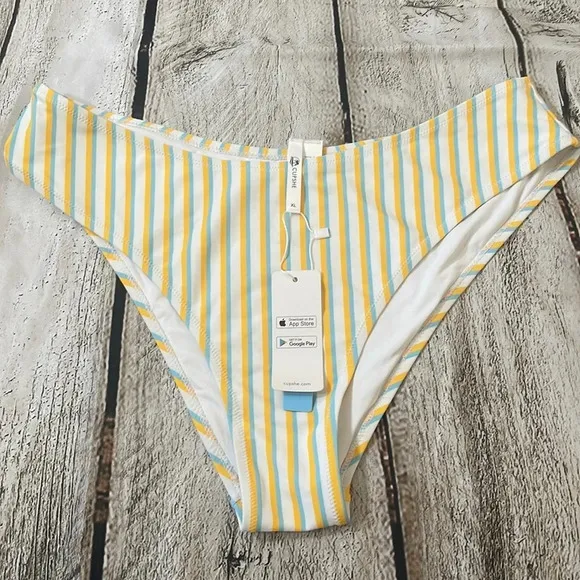 NWT. Women’s. White, yellow and blue vertical striped bikini bottoms. Low waist. Size XL. Thank you... Show more