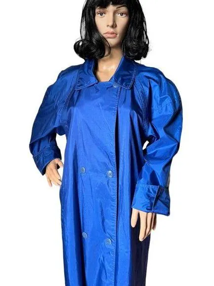 I love the color of this coat, fantastic vintage 1980s wind/ slash raincoat. It's a medium weight not too heavy or not too light. Double breasted front, side pockets and fully lined. Raglan sleeves and large buttoned cuffs Measurements are approximate •Length 50" •Armit to armpit 20" •Shoulder to shoulder •Sleeve length 17" from armpit to cuff Due to vintage sizes being different to modern sizing, please check your own measurements and compare before purchasing. In good preowned condition, only flaw is one button is missing from cuff. Any questions please ask •Five-star seller •Same day shipping or next •Bundle discount available 1