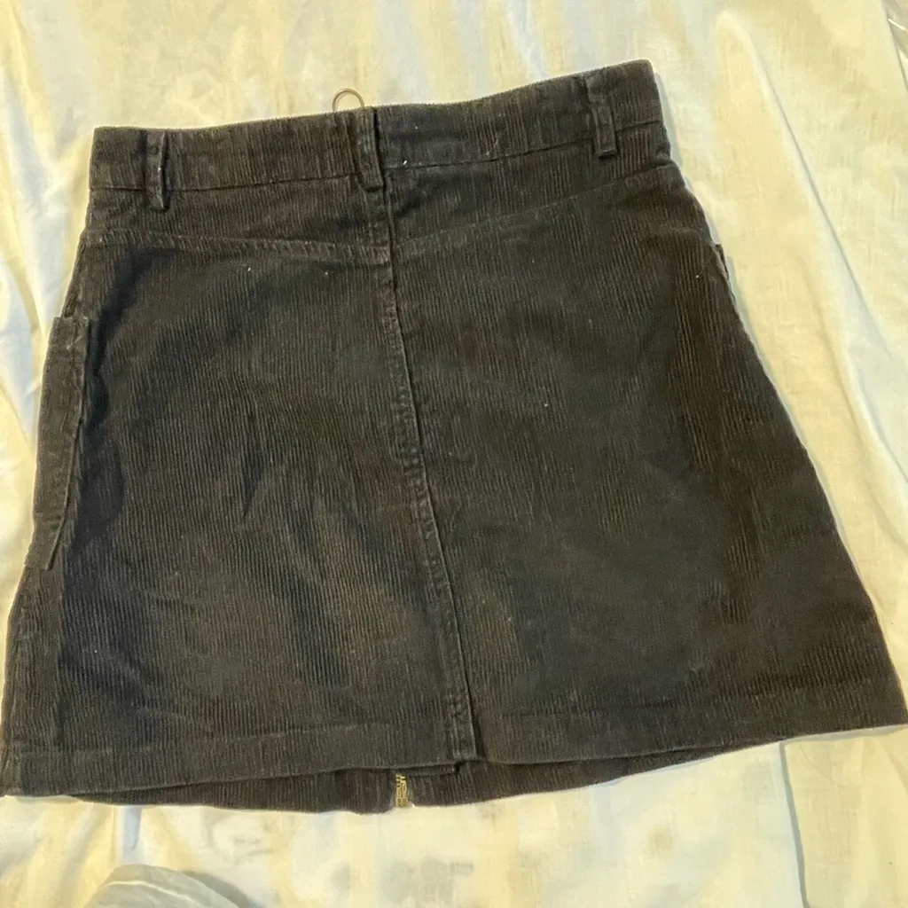 Charcoal corduroy Skirt featuring a gold zipper. Unique ring pull design adds flair. Size small