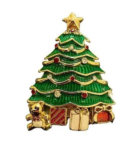 Monet Vintage Brooch Pin Christmas Tree Bear Presents Rhinestone Gold Tone EUC - $30 - From Ashley