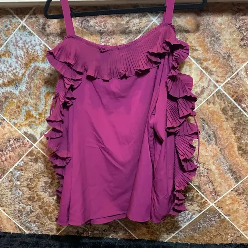 Women's Lane Bryant Plus Size 22 Eggplant Ruffle Lace Up Sleeve Cold Shoulder Statement Blouse Long... Show more