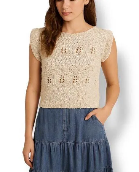 Vintage 90s Scotland Yard Handmade Knitted Vest • Features Openwork Patterns and Ruffled Sleeves • Made with 60% Linen and 40% Cotton for Breathability • Size 36 US 4 • Small Snag Present • Perfect for Cottagecore or Prairie Aesthetics Flat lay measurements 20.5 inches pit to pit 18 inch length Thank you for shopping sustainably with this preloved item Style Tags: Cottagecore Prairie Boho Bohemian Romantic Lightweight Nautical 90s Nineties Fall Winter Transitional