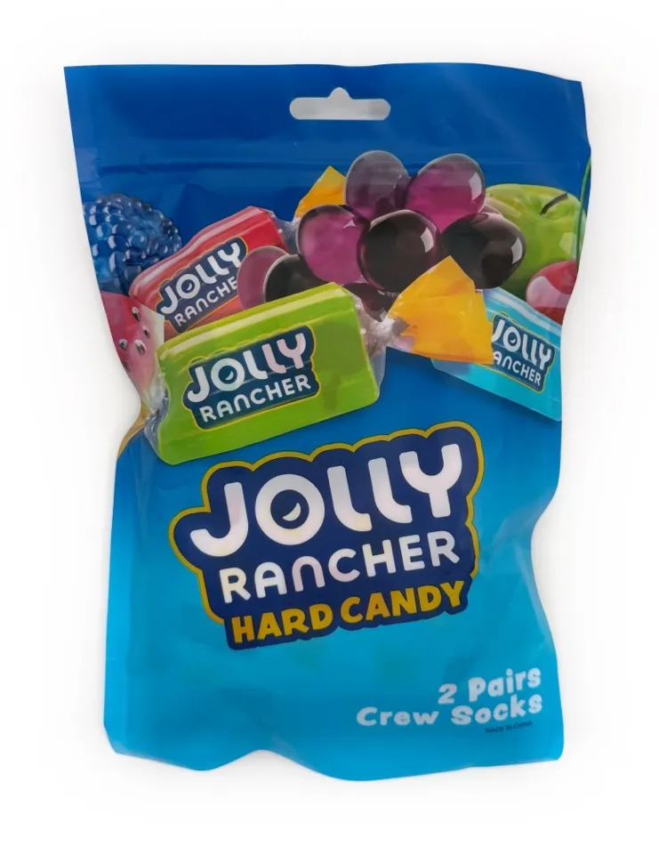 JOLLY RANCHER WOMENS CREW SOCKS • Brand new with tags • Womens shoe sizes 5-10 • Crew height • 1 pair - white, pink, red - cherries, watermelons, hearts • 1 pair - light pink, red, yellow - cherry and watermelon Jolly ranchers all over • Novelty Jolly Rancher bag packaging • 98% polyester, 2% spandex
