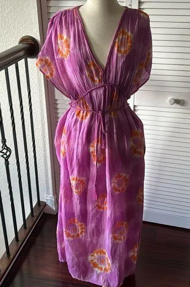NWOT Zara Women 100% Cotton Floral Printed Midi Kaftan Dress Multicolor Size XS-S