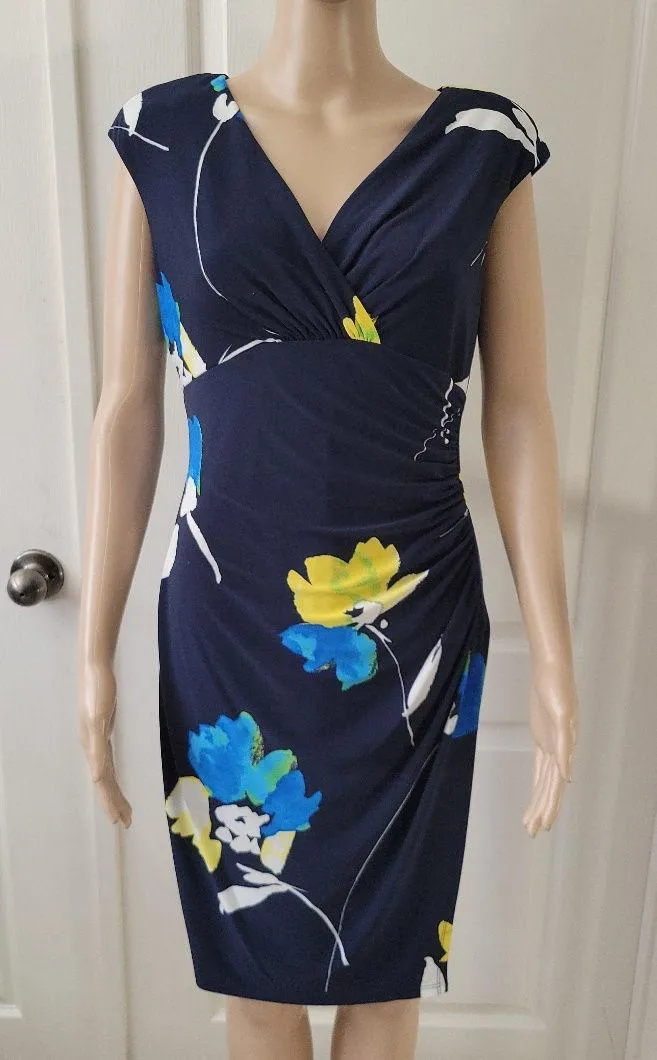 Ralph Lauren Navy Blue Floral Print‎ Jersey Ruched Dress Size 4 - $36 - From Jennifer