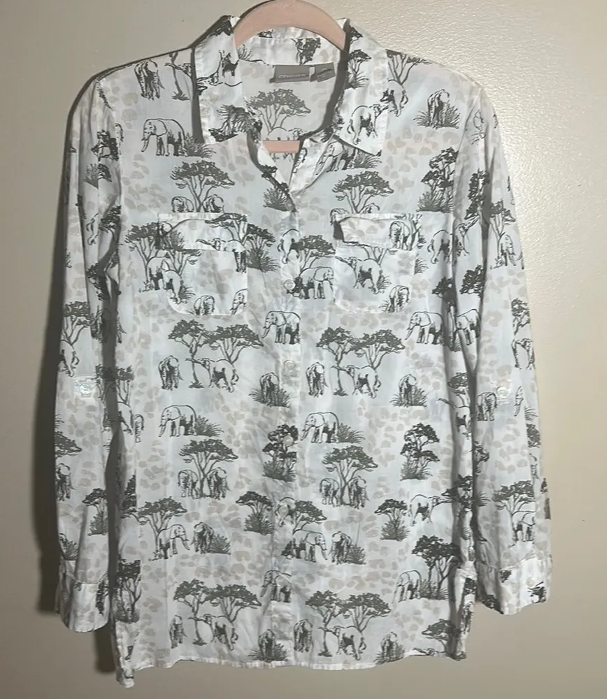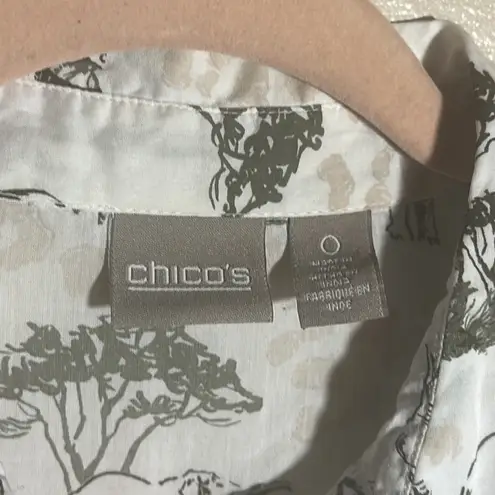 Chicos Women’s Top Size 0 P2P measures 18.5” Length measures 27” Elephant / Safari print Button dow... Show more