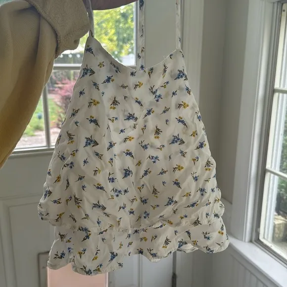 Layered spaghetti strap shirt white with flower details