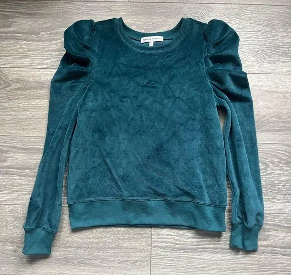 Rebecca Minkoff sweater. Teal. Velour. Princess like puff shoulders. Long sleeves. Size XS. Previous... Show more