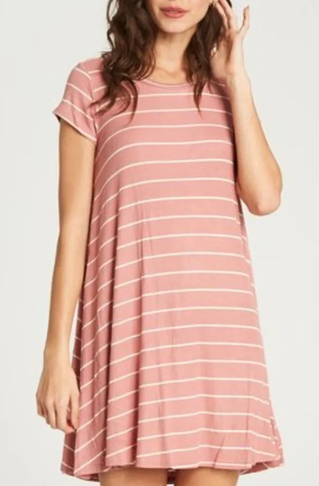 Billabong pink and cream striped dress. Size: Small 86% Rayon 10% Polyester 4% Elastane