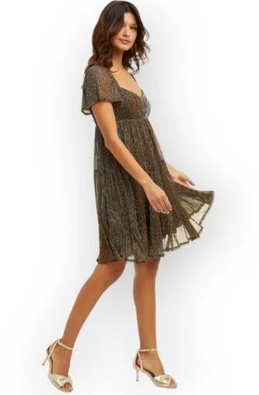 NWT Draper James Emily mini dress lurex plisse bronze silver black Sz S tiered - $59 (66% Off Retail) New With Tags - From Rocked