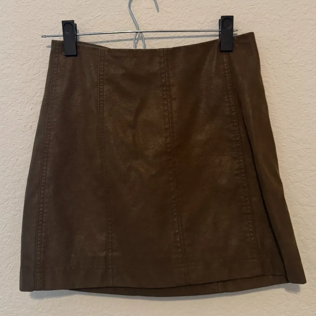 This is a stylish and versatile Free People faux leather mini skirt in a rich brown/olive color. The... Show more