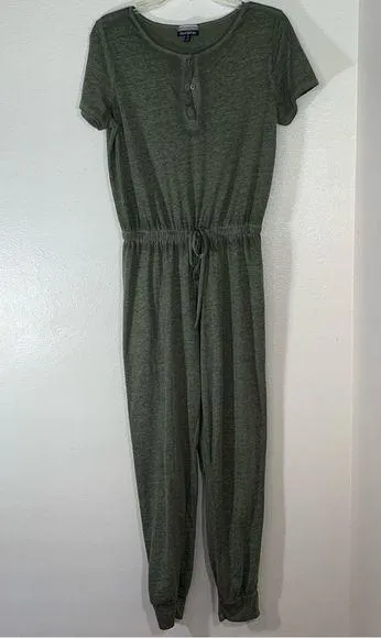 This olive green jumpsuit features a relaxed fit and an elastic waist for comfort and style. Its short sleeves and round neckline make it ideal for casual occasions, while the straight leg design offers a sleek look. SIZE: Small CONDITION: Pre-Owned, but Good Condition FLAWS: None Visible - Please see photos for more details STYLE: jumpsuit, loungewear, lazy days, self care, casual, relax, comfort, soft life, athleisure, errands MEASUREMENTS (approx.): Please see photos SPECIAL MESSAGE FROM SELLERđź’•: Thank you for taking the time to review my listing. I want you to feel 100% confident in your purchase so please feel free to ask any clarifying questions to support in your decision-making process. **REASONABLE OFFERS ACCEPTED**