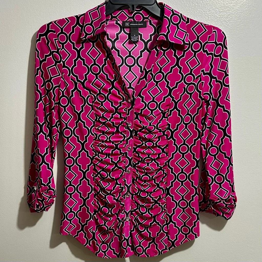 INC International Concepts Pink and Black Geometric Blouse (204) Size M - $16 - From Kristine
