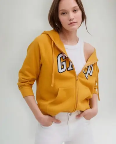 Embrace a relaxed style with the GAP Yellow Hoodie, featuring a bold graphic logo in blue and white.... Show more
