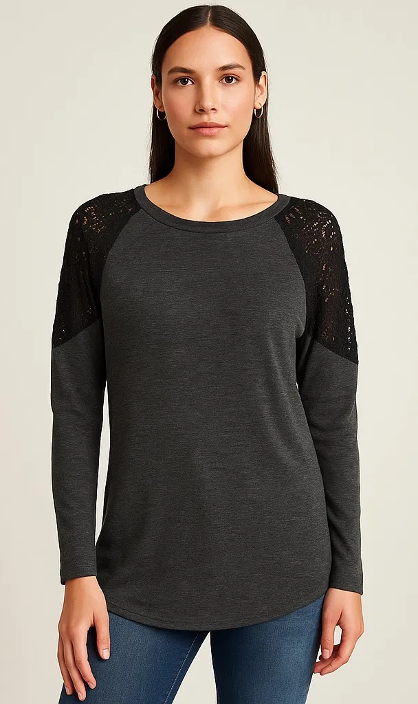 Old Navy women’s long sleeve knit top in size Small. Features a charcoal gray heathered body with co... Show more