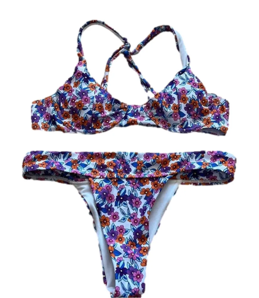 Shein floral bikini with underwire and padded cups. Features adjustable straps and a back clasp clos... Show more