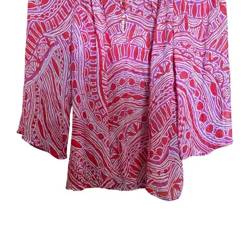 This Trina Turk blouse is a true work of art. The multicolor print is sure to turn heads and make a... Show more