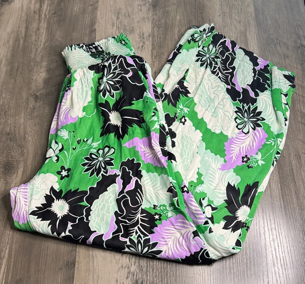 Maeve Vibrant Floral Wide Leg Pants Green Size XS - $65 - From Katrina