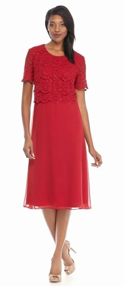 Be an image of elegance in R&M Richards' popover dress, detailed with a chic lace bodice. It has a s... Show more
