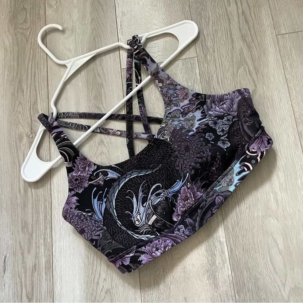 Lululemon Printed Energy Sports Bra in the color Purple in the print Memoir Multi Purple. Scoop neck... Show more