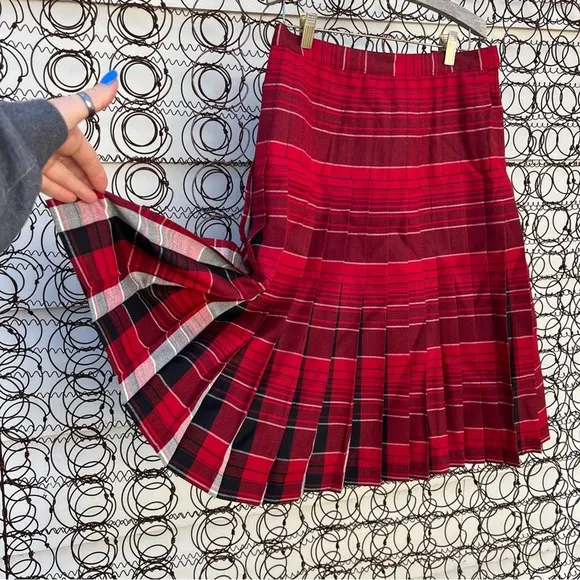 Pendleton Woolen Mills reversible turnabout red black tartan plaid pleated skirt 100% virgin wool... Show more