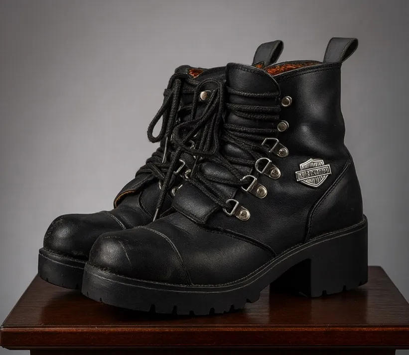Vintage Y2K Harley Davidson Chunky Leather Lave Up Riding Moto Boots Women's sz 7 Grunge Biker 90's... Show more