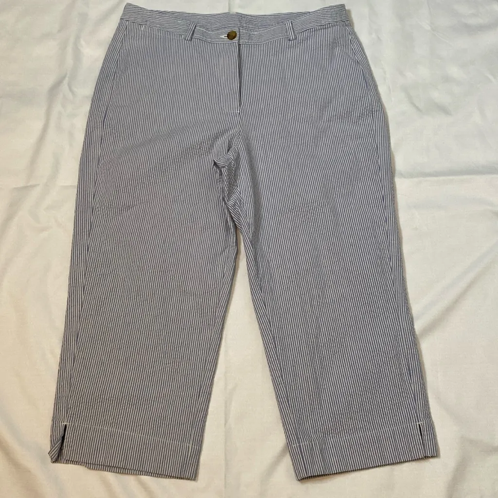 12 L.L. Bean Stripe Blue White Capris 14 Petite Wide Leg Office Minimalist Size 14P - $15 - From Whitney
