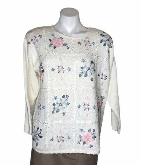 Ivory ramie cotton blend. Featuring embroidery, pearl like beads, organza fabrics. Shoulder pads are easily removed, one is loose on one side. A sweet, cottagecore piece with a few loose threads but no major issues. Ready to wear! Approx 21” underarm to underarm, 24” long. ✔️ Same or next business day shipping ✔️ Bundle and save!