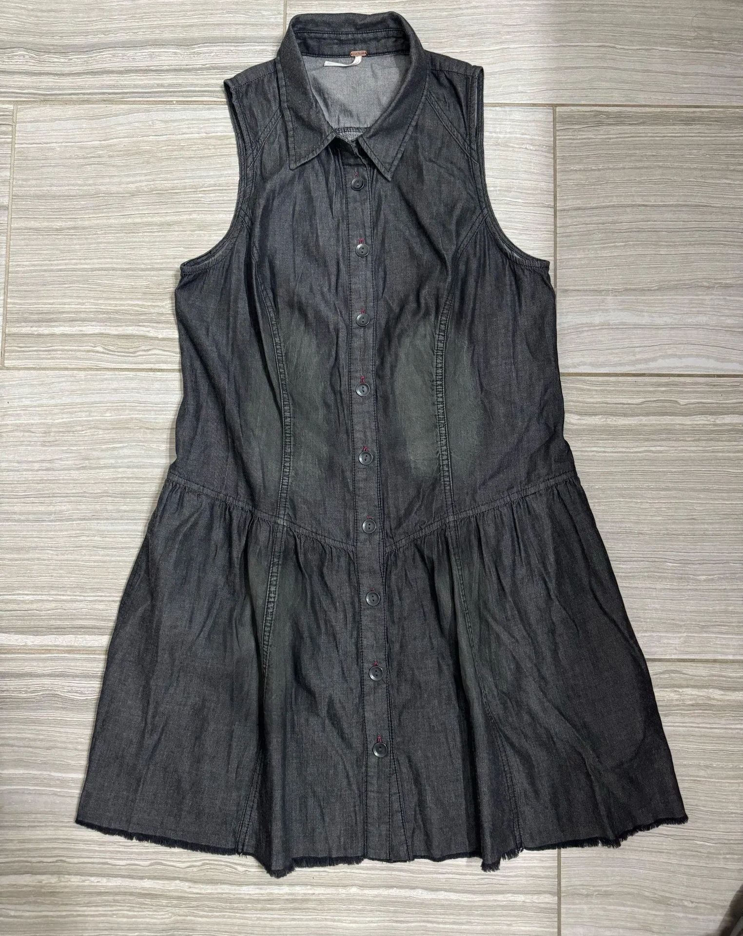 Free People Black Distressed Mini dress distressed wash, button up, collar, tank mini dress denim... Show more