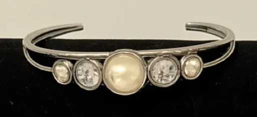 Vintage Y2K Silver Tone White Pearly Rhinestone Wide Statement Bangle Bracelet Silver - $35 - From Briahnna