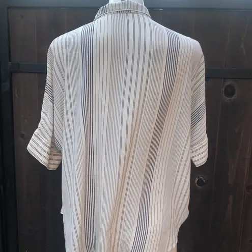 Eileen fisher beige striped silk short sleeve button down petite shirt Black Size undefined - $27 - From Erika