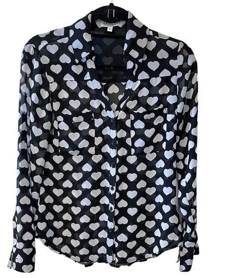 Black and White Heart Print Portofino Button up shirt Size XS In excellent condition. Sleeves can b... Show more