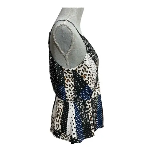 In like new condition Cabi Chiffon Animal Print Polka Dot Faux Wrap Sleeveless Blouse Size 6 Women's... Show more