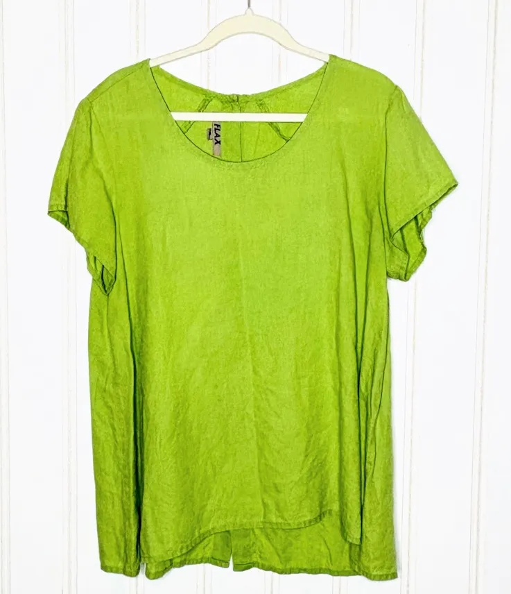 Flax Linen Button Back Green Top Sz Small - $30 - From Jennifer