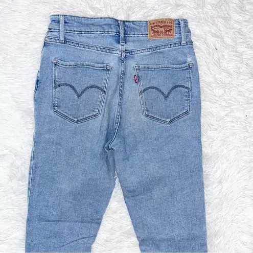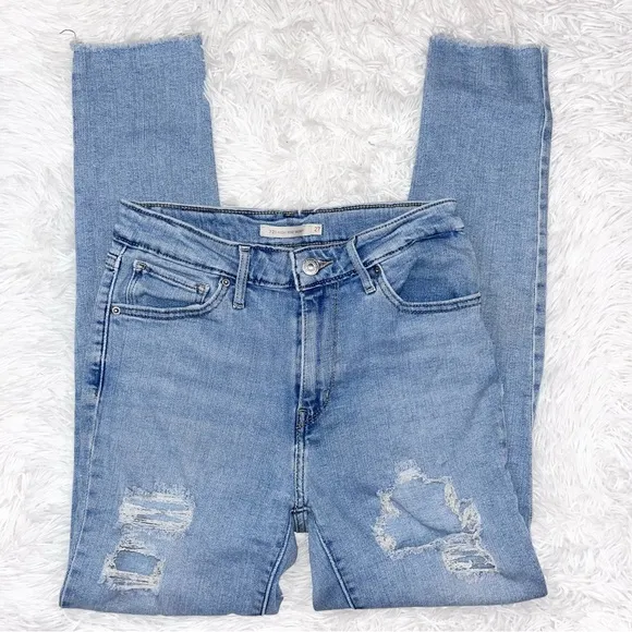 Women’s LEVI’S 721 High Rise Skinny Distressed Light Wash Blue Denim Jeans. Raw hems. Zipper fly wit... Show more