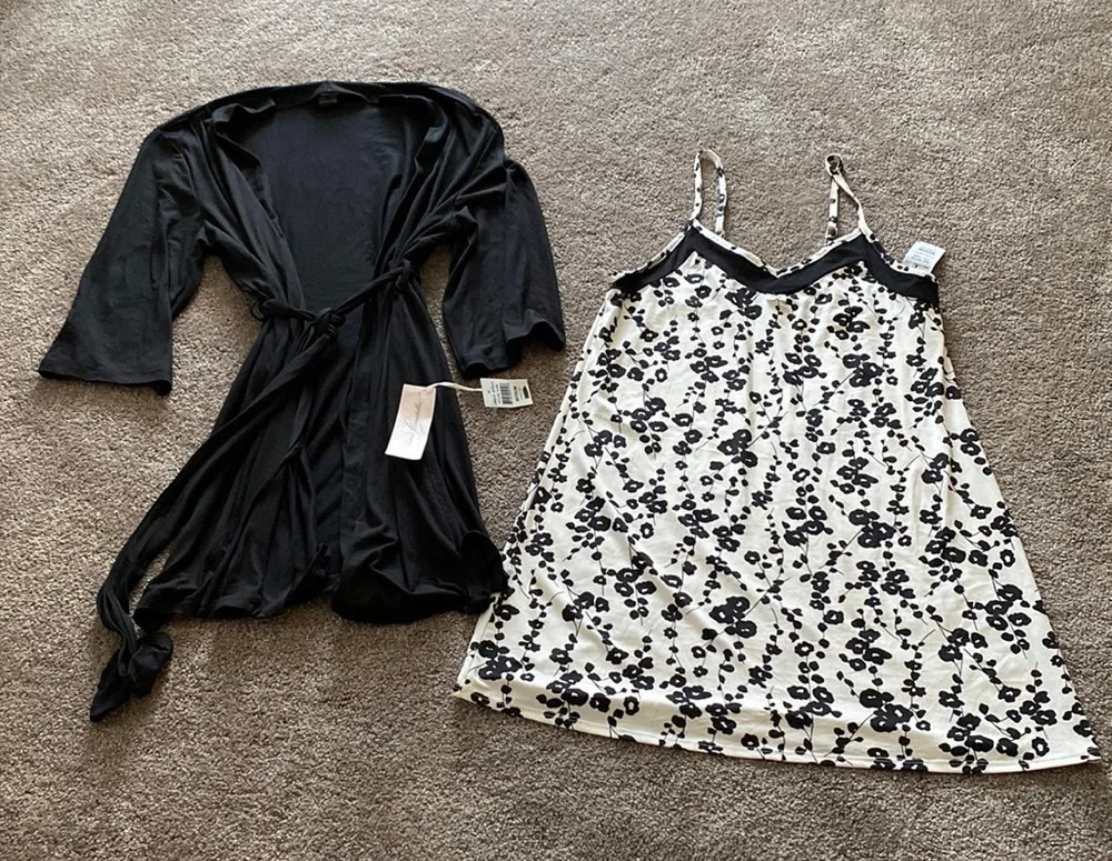 Linea Donatelle Floral Black White 2 Piece Robe/Chemise Set SIZE M Size M - $35 New With Tags - From My