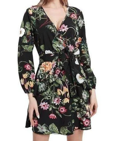Buguest Black base color Multicolored floral print V-Neck Long sleeve with elastic cuffs Surplice Faux wrap style Polyester and spandex Hand wash only Womens Dress SZ XXL P to p 21 L 38.5 CONDITION: NEW WITH TAGS *FAST SHIPPING *ALL ITEMS SHIP SAME OR NEXT BUSINESS DAY *All items come from a smoke free home *Most pictures are taken with artificial lighting (ring light). Some colors may be slightly different. We will state that in the description if so. *Please feel free to ask questions. *Bundle to save on shipping