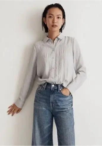 Madewell Women Grey Silver Long Sleeve Crinkled Relaxed Button Up Shirt small - $30 - From Brittany
