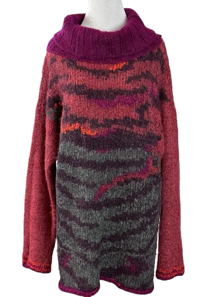 Details: Cozy up in this chunky multi-colored sweater with a fuzzy fabrication and a long silhouett... Show more
