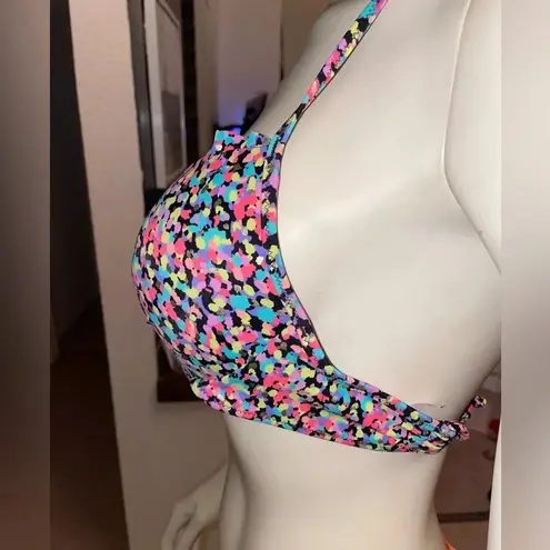 Neon confetti pattern Ruffled edges making that much more feminine Underwire Light padding Halter s... Show more