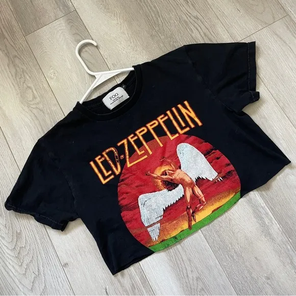 Fear of God Zeppelin Tshirt in the color Black. Led Zeppelin graphic on front. Raw edge hem, I think this shirt has been intentionally cut / cropped. Crew neckline, short sleeve. Back reads "Fear of God / mastermind / japan" Size small, womens. Released in 2015-2016. In great pre-worn condition, no major issues. No materials tag. Perfect streetwear, music band, grunge, casual everyday wear. Limited drop, rare hard to find tshirt.