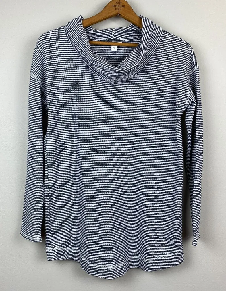 J. Jill Tunic Top XS Cowl Neck Striped Gray White Long Sleeve Knit Cotton Blend Women's Very good... Show more