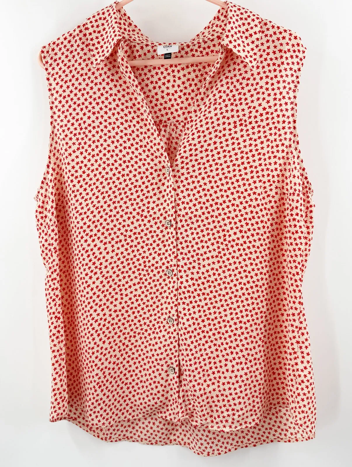 Cabi Tank Top Size Large Blouse Red Flower Lightweight Button Down Collar Sleeveless Size: large Ap... Show more